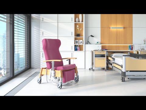 Robustní konstrukce z masivního buku, otočná kola s brzdou, výsuvná stupačka s protiskluzovou úpravou a polohování opěráku i podnožky – to vše zajišťuje pohodlí i snadnou manipulaci. Čalounění je snímatelné a pod sedákem se nachází tekutinám nepropustná vrstva. Křeslo má hygienickou mezeru mezi sedákem a opěrákem, což usnadňuje údržbu a zvyšuje hygienický standard.